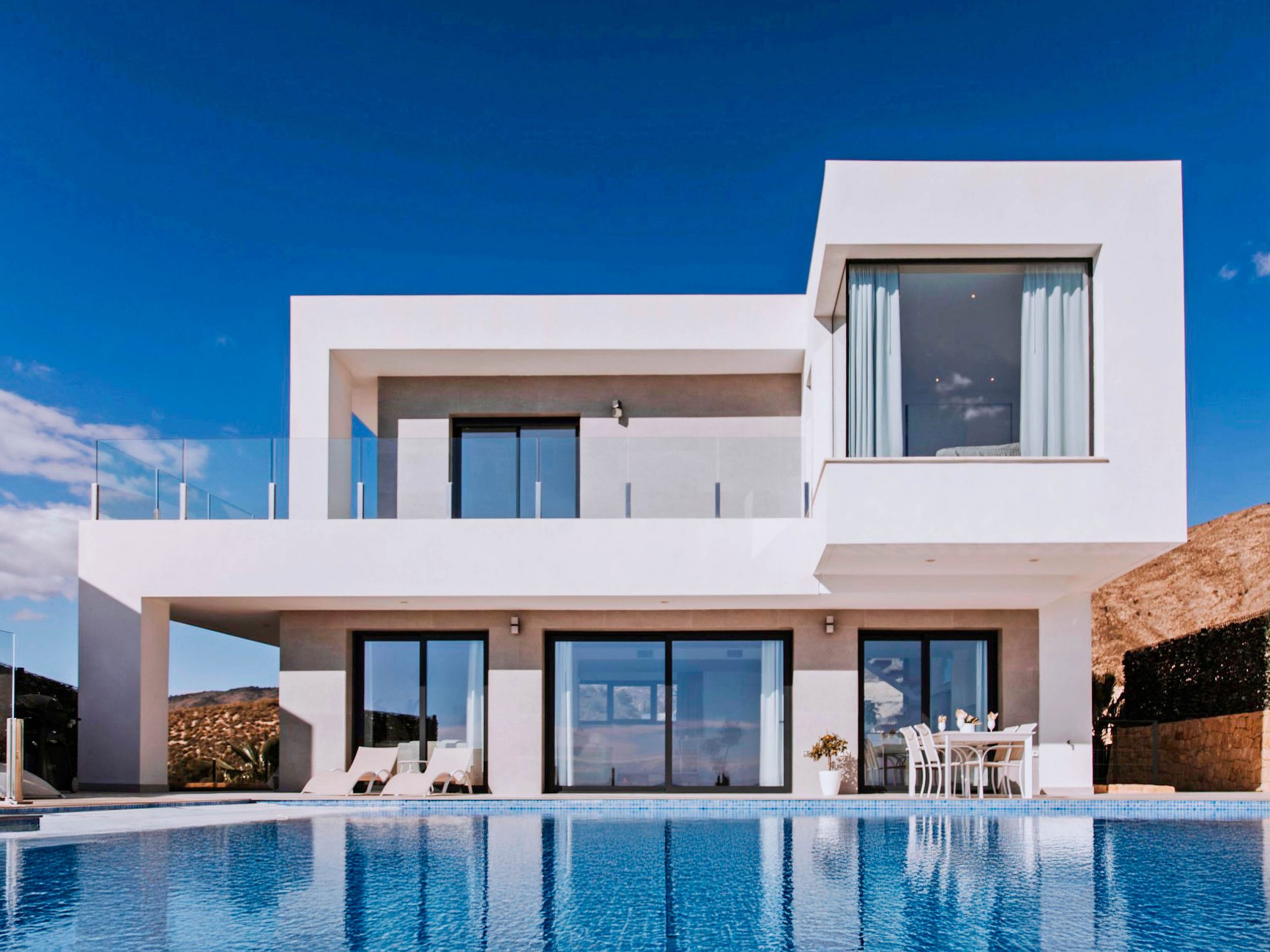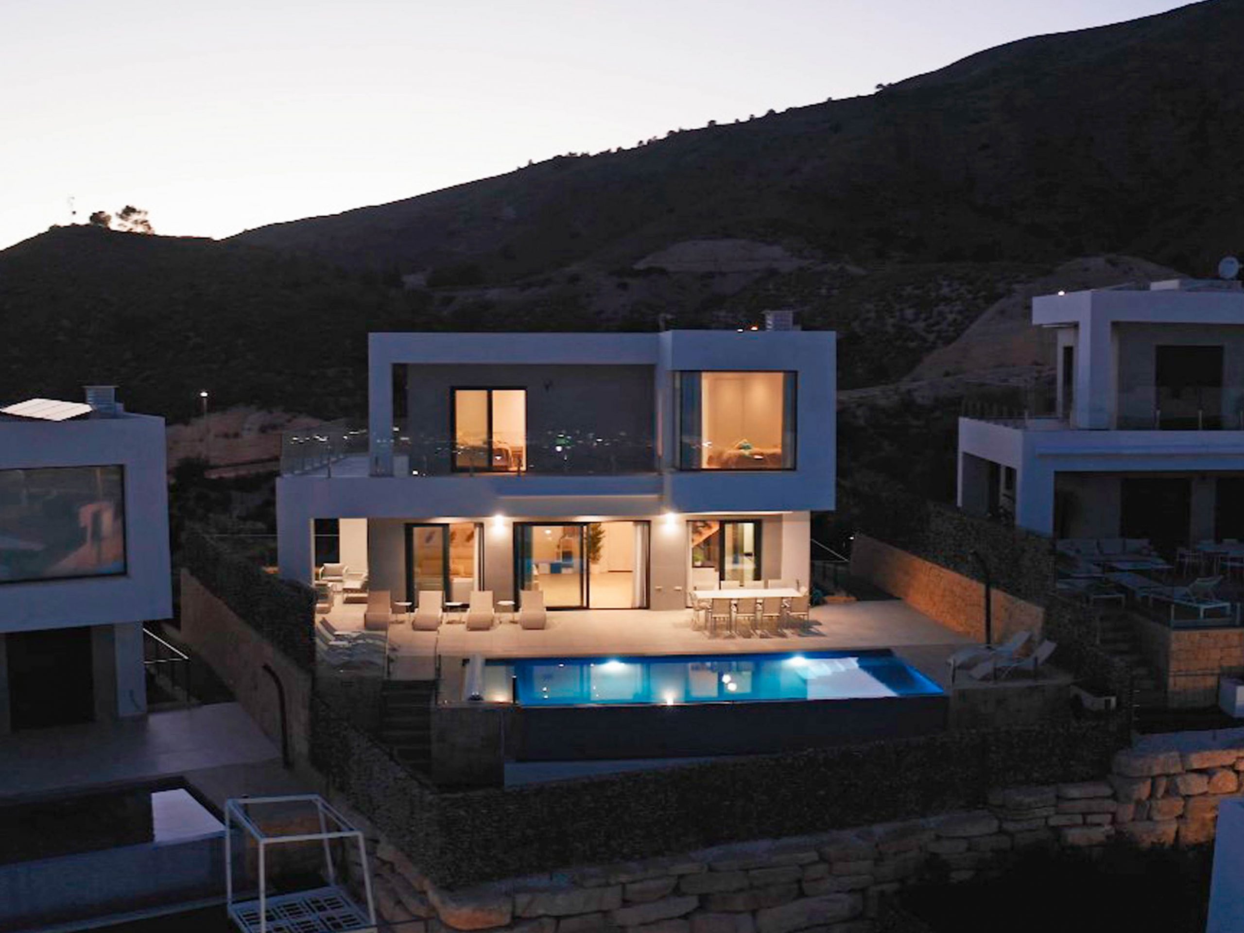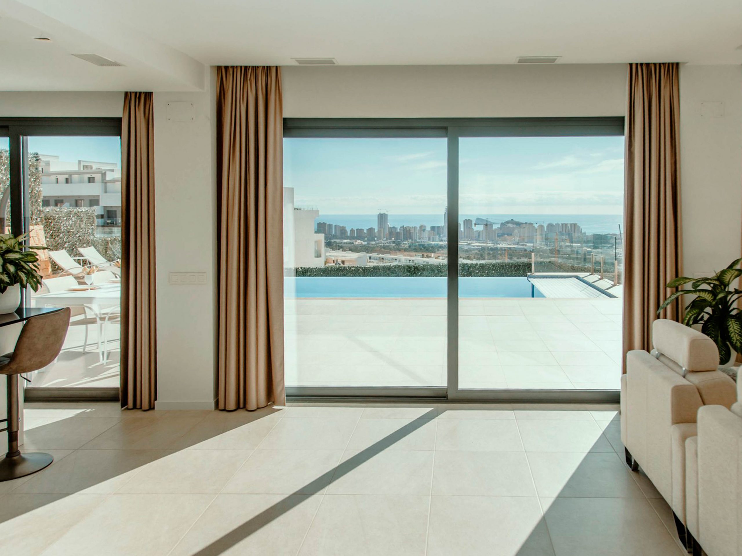 This luxurious villa with infinity swimming pool set in Finestrat new residential area provides spectacular sea views and is only a few minutes’ drive from the beach. Built over three floors, this villa offers four double bedrooms with outstanding views.
